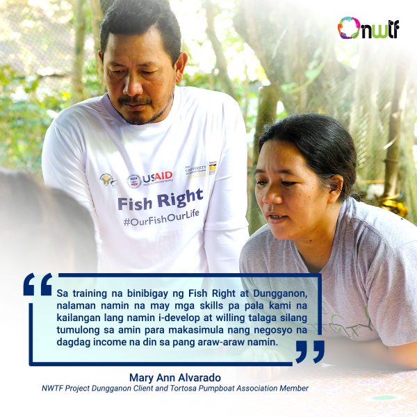 “The training that we are receiving from Fish Right and [NWTF’s Project] Dungganon has been very helpful,” Mary Ann said. “[Through the training,] we learned that we possess skills that we just need to develop. [It has helped] us improve [our skills], which in turn will help us generate more income for our daily needs.”